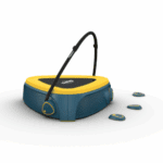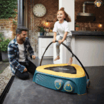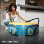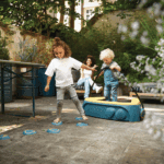 Deze compacte trampoline stimuleert balans en motoriek met zachte vering en veilige anti-slip stapstenen.