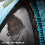 Het fijne springdoek hangt in soepele, elastische veren. Het kost je dus nauwelijks kracht om te springen en te buitelen, op je benen of je billen.